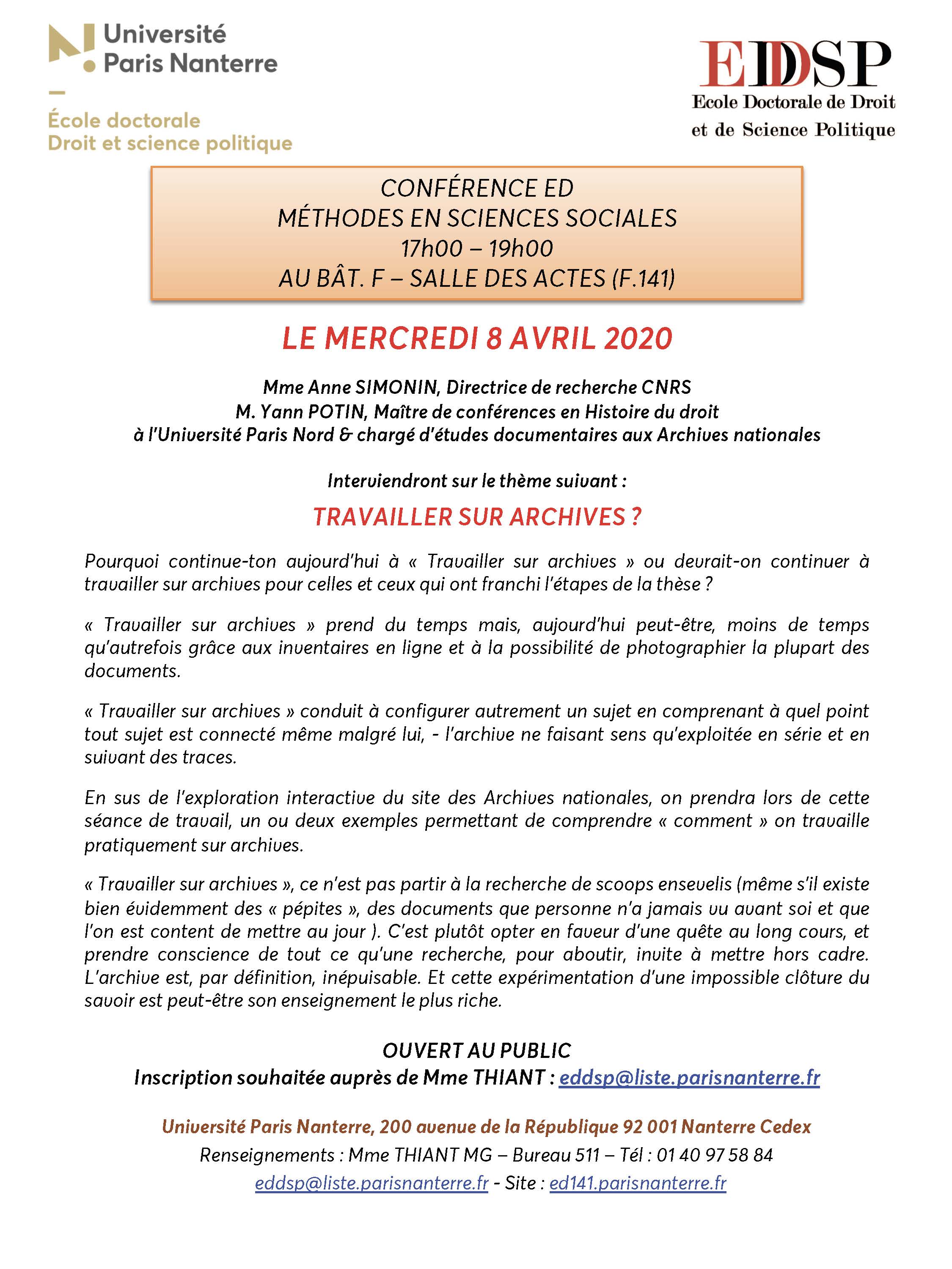 Inscription souhaitée auprès de Mme THIANT : eddsp@liste.parisnanterre.fr