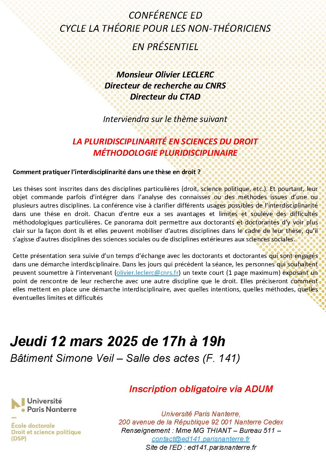 - Cycle La Théorie pour les non-théoriciens12 mars 2026La pluridisciplinarité en sciences du droit. Méthodologie pluridisciplinaire Lire la suite