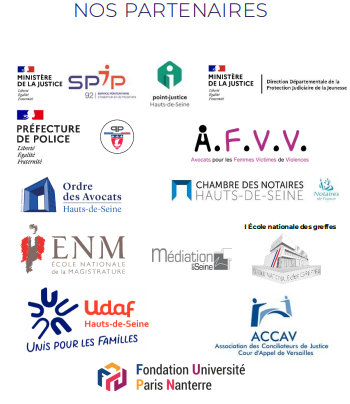 - la Préfecture de Police, de l’Administration pénitentiaire, des délégués du Procureur, de l’Ecole Nationale de la Magistrature, de l’Ecole Nationale des Greffes, de la Chambre des notaires, du Barreau des Hauts-de-Seine, de Médiation en Seine.